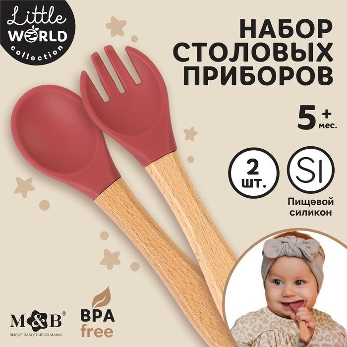 10 цен на Набор детский столовых приборов, вилка и ложка M&B (силикон, бамбук), вишня