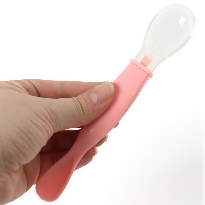 Ложка детская для кормления силиконовая, от 5 мес., цвет розовый