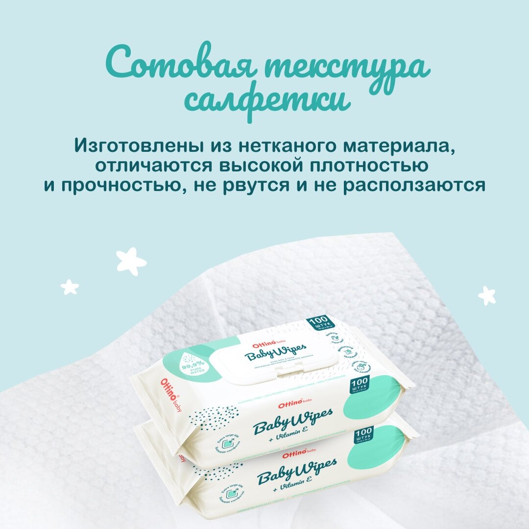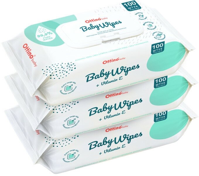Отзывы на Влажные салфетки для детей OTTINO /оттино/ 300 шт, набор из 3 уп по 100 шт