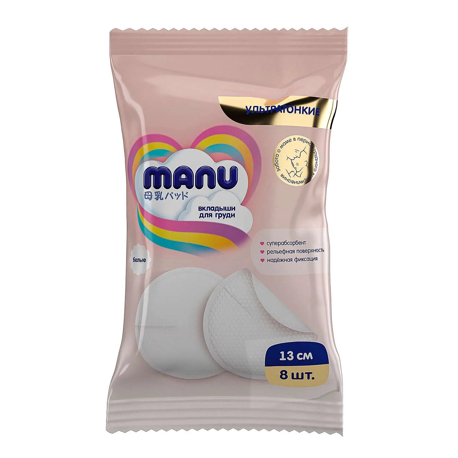 Вкладыши лактационные Manu с суперабсорбентом 8шт NP-UTSO130F-DP-8 информация: