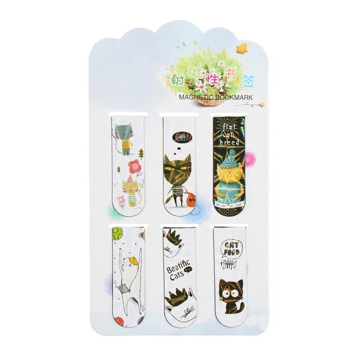 Набор магнитных закладок для книг Calligrata 6 штук, "Котики", микс информация: