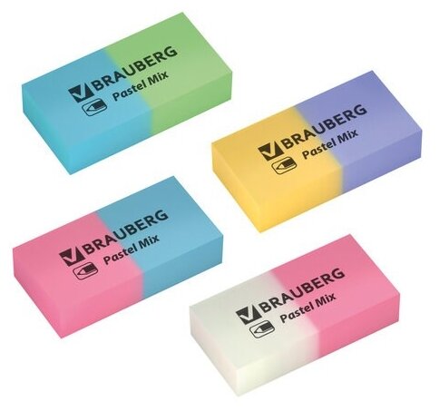 Набор ластиков BRAUBERG "Pastel Mix", 6 шт., цвета ассорти, 44х21х10 мм, экологичный ПВХ, 229597 информация: