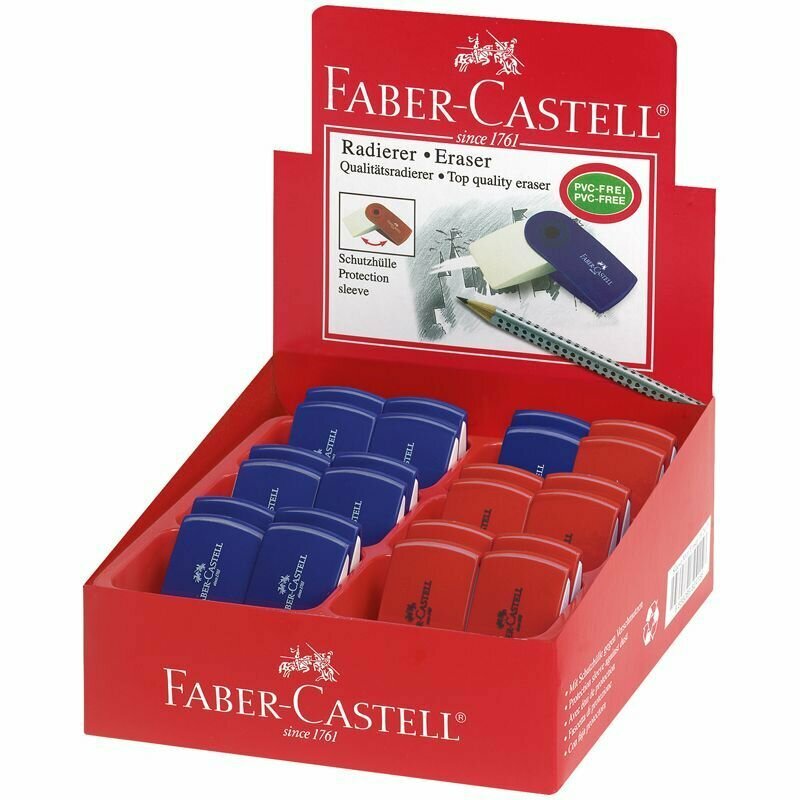 Ластик Faber-Castell "Sleeve Mini", прямоугольный, 54*25*13мм, красный/синий пластиковый футляр информация: