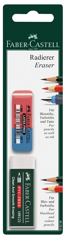 Набор ластиков Faber-Castell 2шт. (арт. 187040-комбинированный ластик и арт. 188121-ластик PVC-Free), блистер, 2 штуки информация: