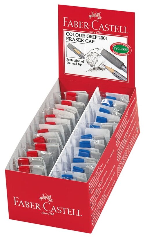 Набор ластиков-колпачков Faber-Castell "Grip 2001" 2шт., трехгранные, 2 цвета, дисплей, 24 штуки в упаковке информация:
