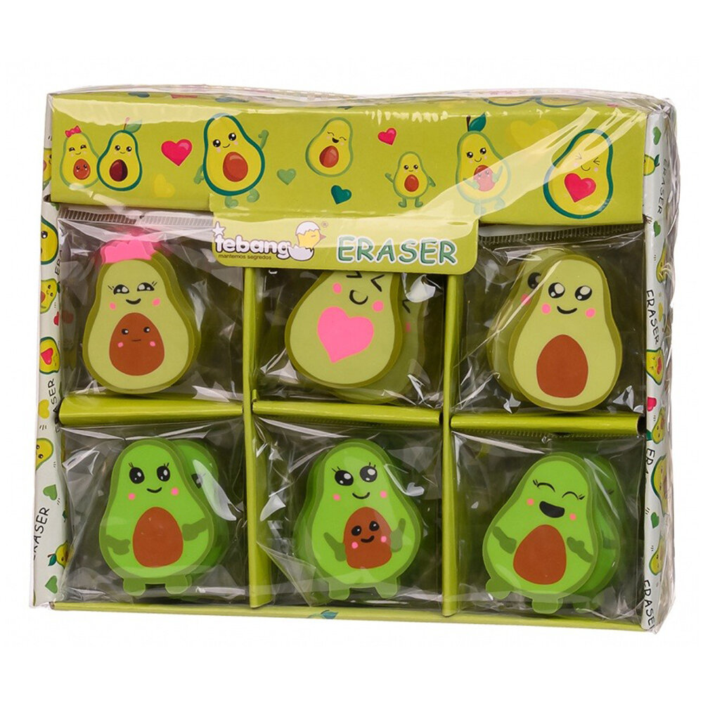 Набор ластиков фигурных 6 штук, в виде авокадо, Qihao, мягкие цветные, размер 4.5*3.3 см, школьные стерки для детей информация: