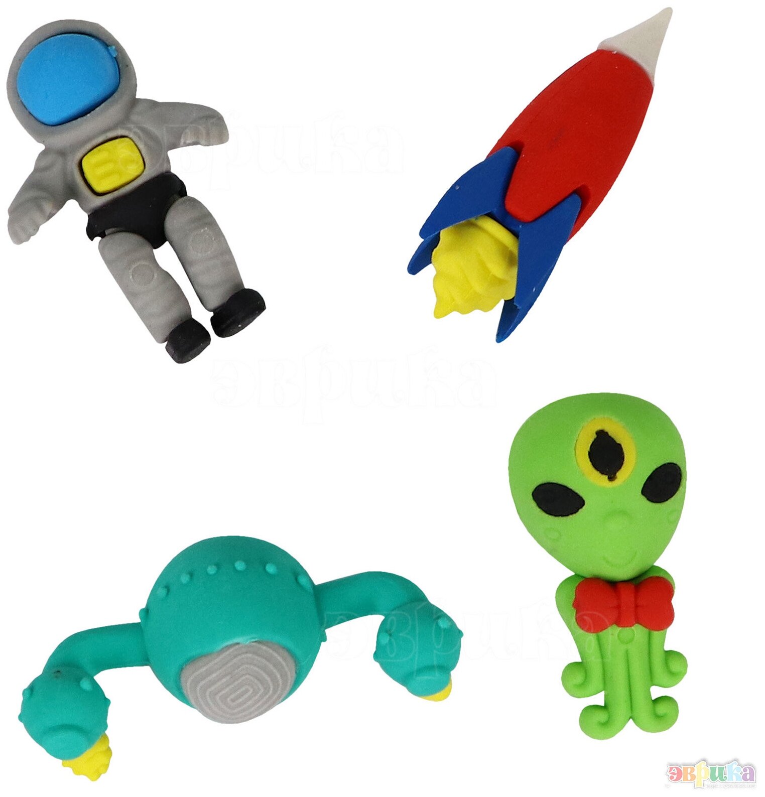 Отзывы на Ластики набор Космический (N 1) 4 шт. ракета, космонавт, инопланетянин, спутник подарочный набор Космос 12 апреля День космонавтики, 23 февраля