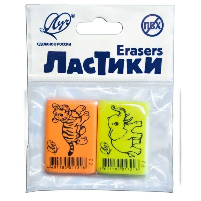 10 цен на Набор ластиков 2 штуки Луч "ZOO", термопластичная резина (35 х 25 х 8 мм), микс