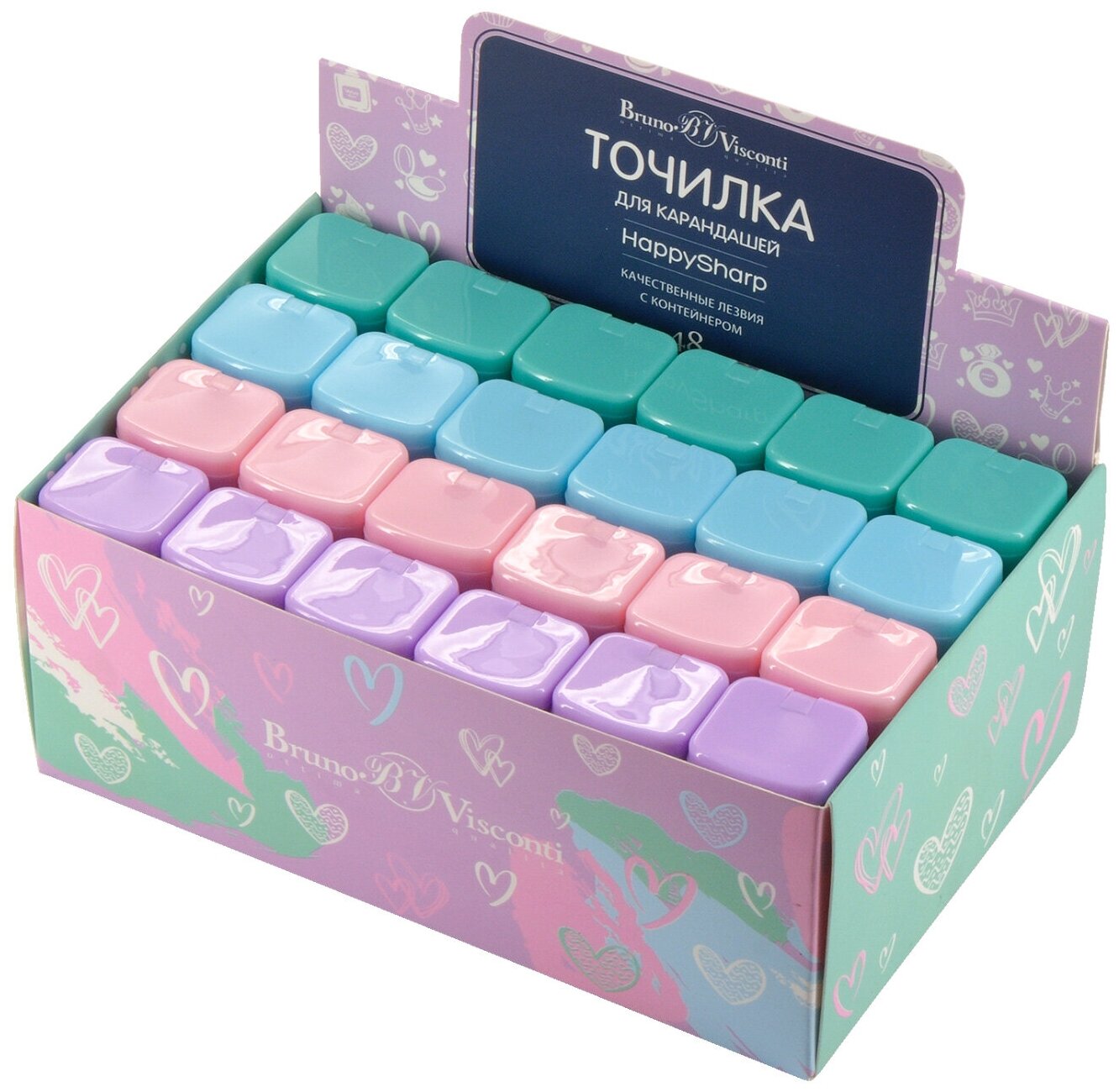 10 цен на Точилка с контейнером "HAPPYSHARP. Девчачьи радости", 4 цвета Цена за 1 шт.