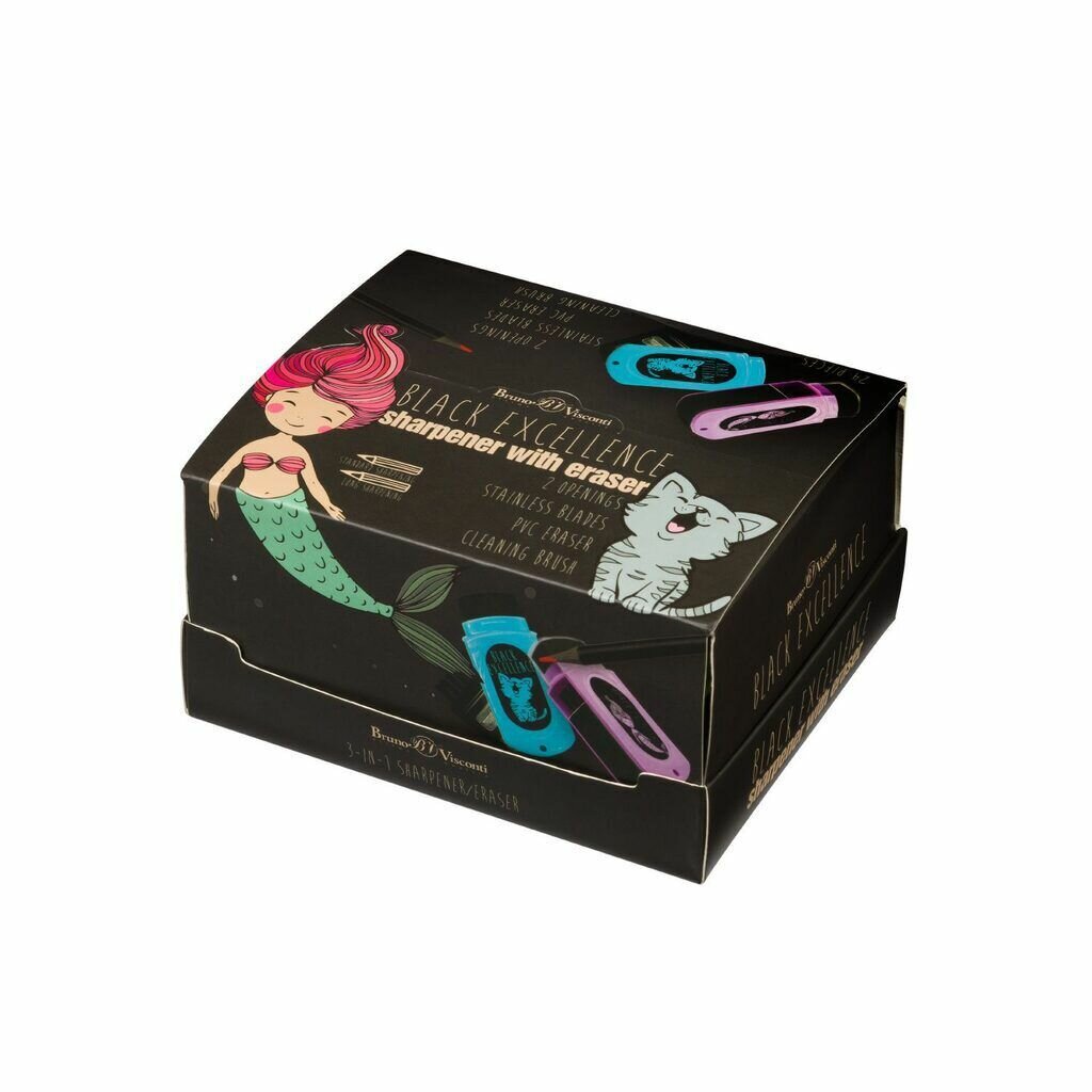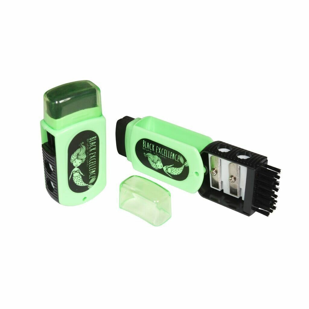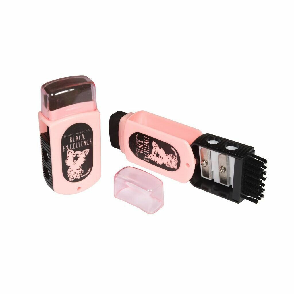 Точилка пласт. с контейнером 2 отв. Black excellence, ластик и щетка информация:
