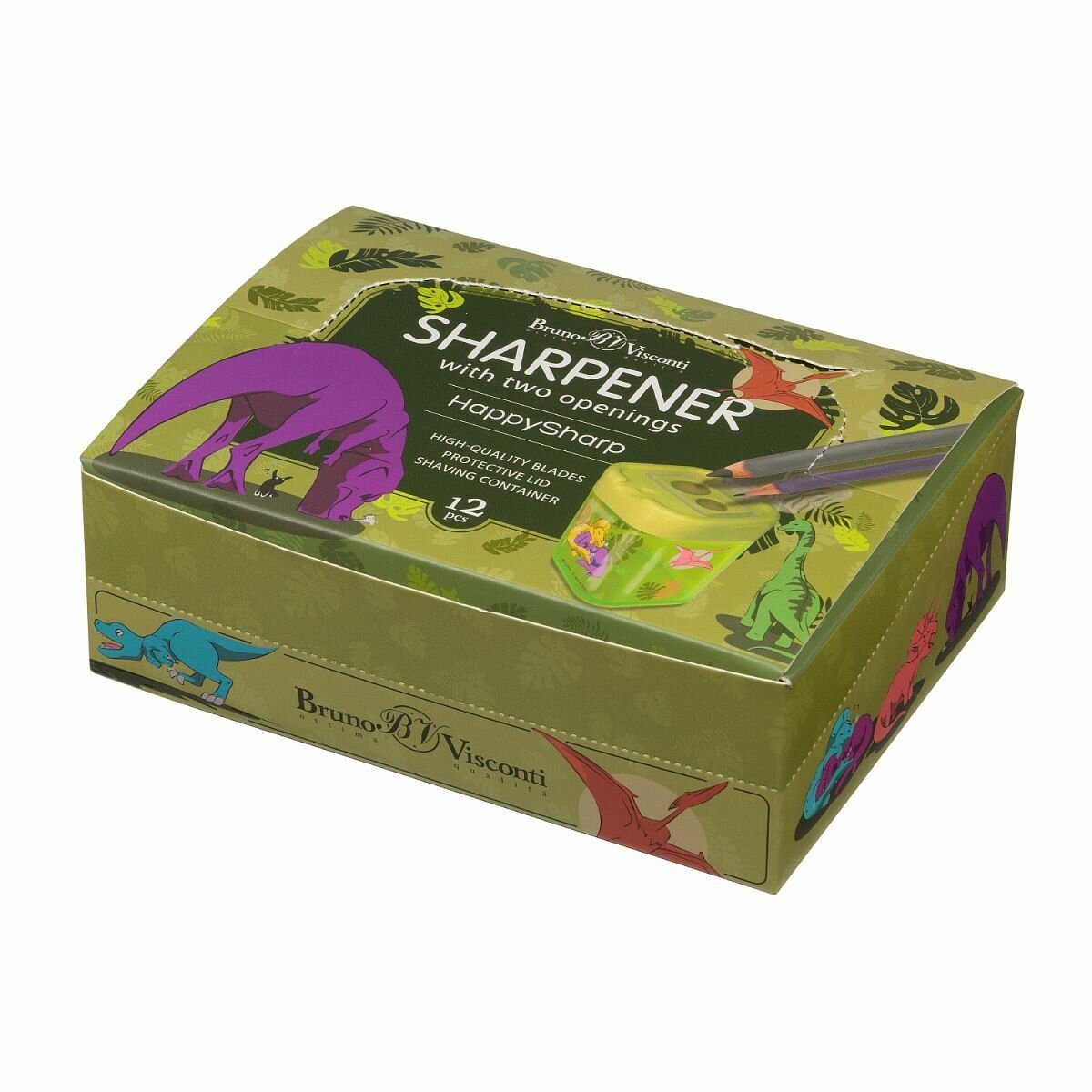 Точилка пласт. с контейнером 2 отв. HappySharp. Динозавры, 2 цвета. Комплект из 12 точилок информация: