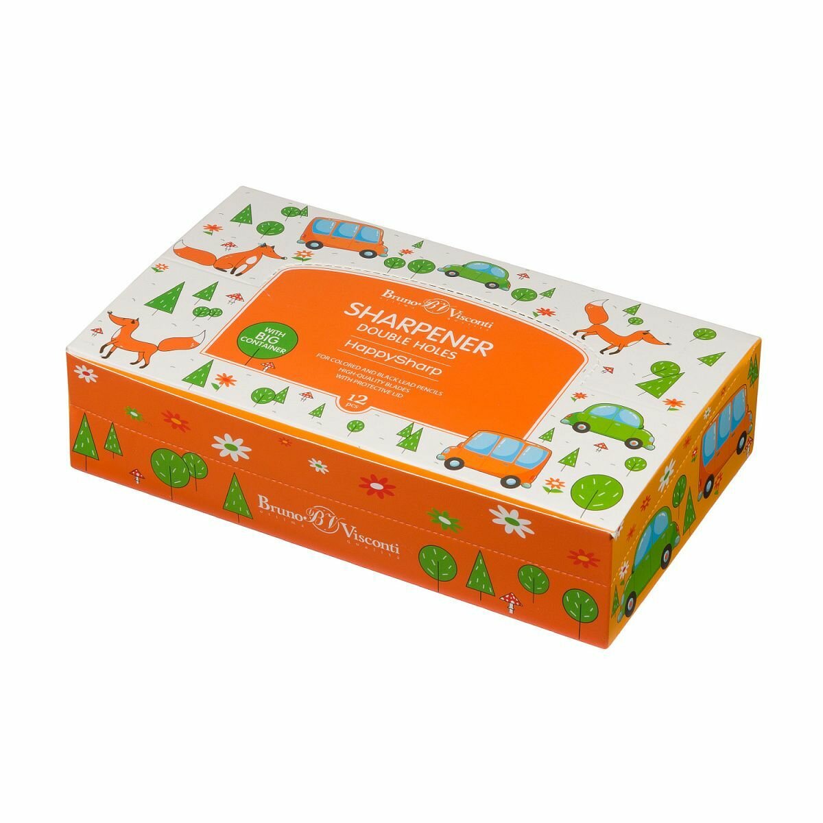 Точилка пласт. с контейнером 2 отв. HappySharp, 2 цвета. Комплект из 12 точилок информация: