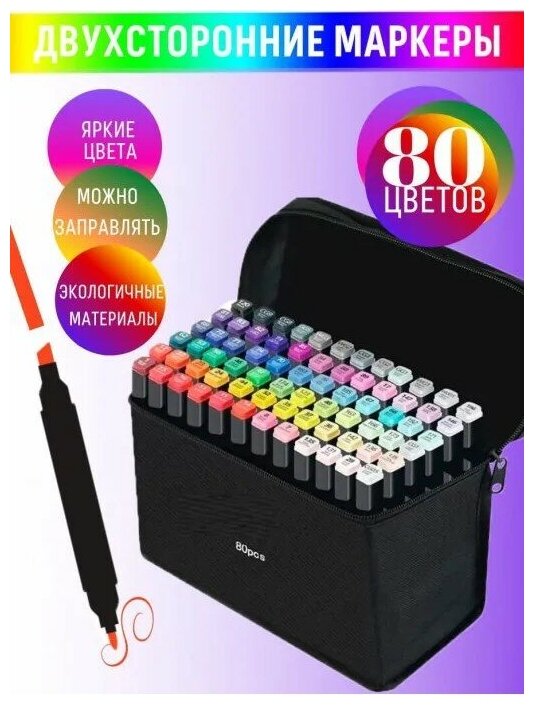 Отзывы на Маркеры для скетчинга, набор профессиональных двухсторонних маркеров в чехле - 80 цветов