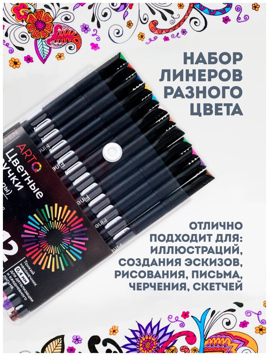10 цен на Набор из 12 цветных водостойких линеров "Corot" для рисования / капиллярные ручки для скетчинга