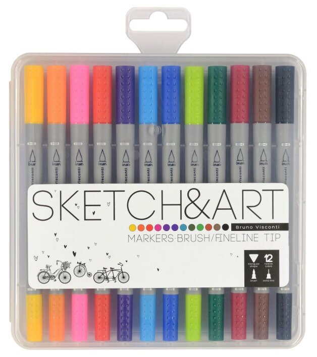 Набор двусторонних скетч-маркеров Bruno Visconti "SKETCH&ART" (Кисточка + Линер) 12 цветов