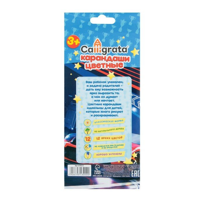10 цен на Карандаши цветные 12 цветов, "Машинка", корпус деревянный, шестигранный