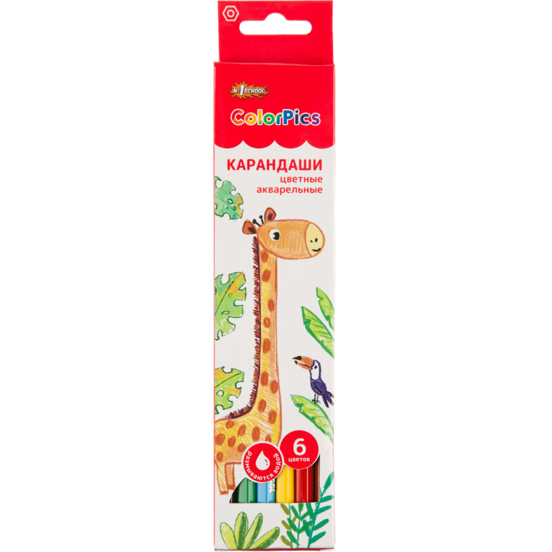 Карандаши акварельные 6 цветов №1 School ColorPics (L=175мм, d=3мм, 6гр) (1743390), 24 уп. информация: