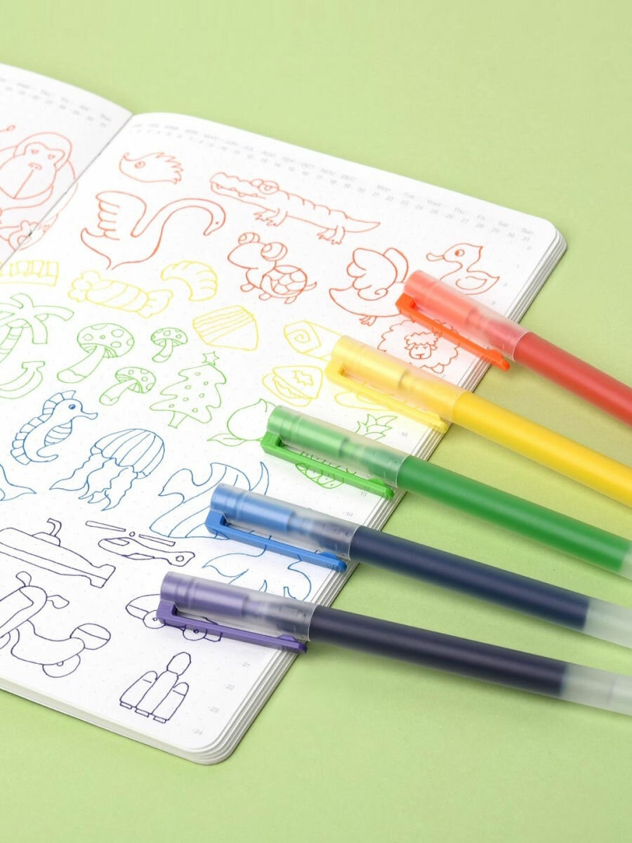 10 цен на Набор гелевых ручек Xiaomi Rainbow Gel Pen 5 Colors MJZXB03WC