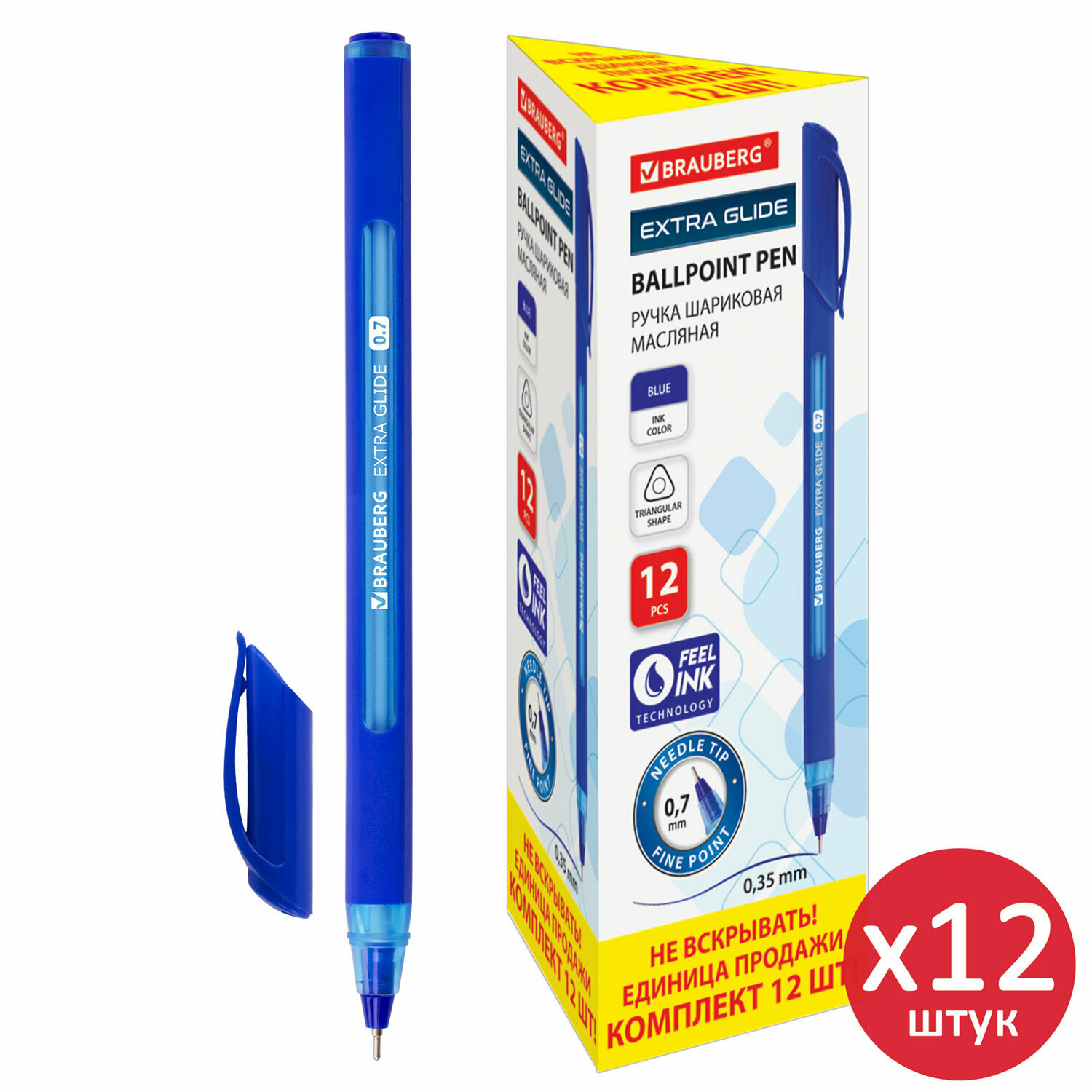 Ручки шариковые Brauberg Extra Glide Soft, Синие, Комплект 12 штук, 0,7мм, 880599 информация: