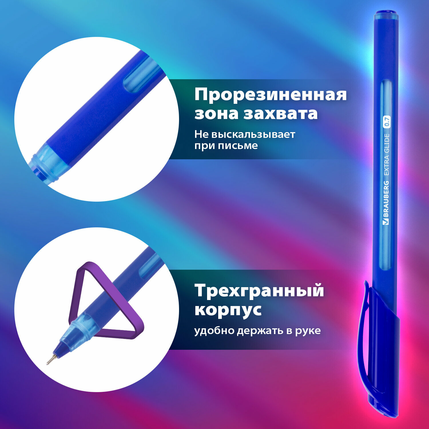 Ручка шариковая масляная с грипом BRAUBERG "Extra Glide GT", синяя, трехгранная, узел 0,7 мм, линия письма 0,35 мм, 142681, в комплекте 12шт