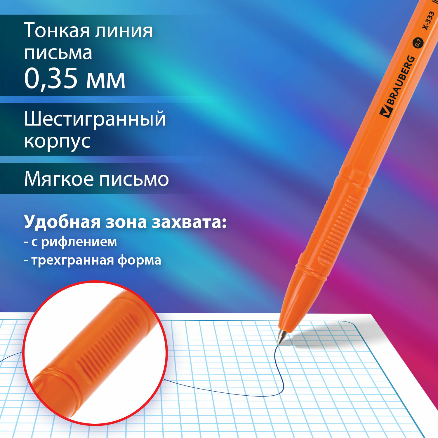 Ручка шариковая BRAUBERG X-333 Orange, комплект 50 штук, синяя, узел 0,7мм, линия 0,35мм, 880006 информация: