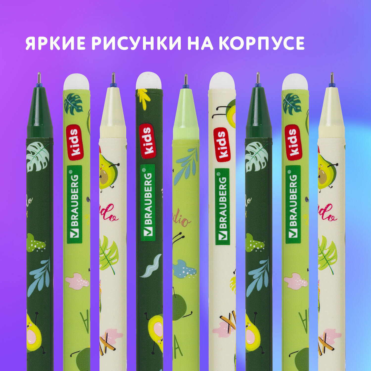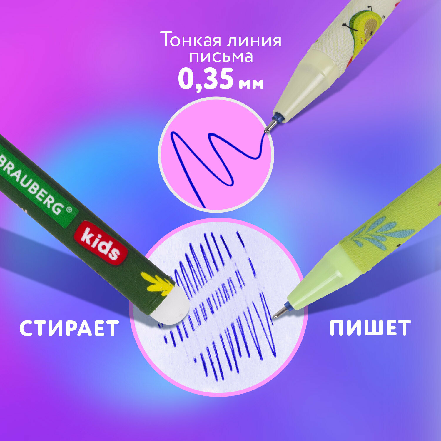 Отзывы на Ручки пиши стирай набор гелевые BRAUBERG KIDS "AVOCADO", синие, комплект 12 штук, линия 0,35м, 144100