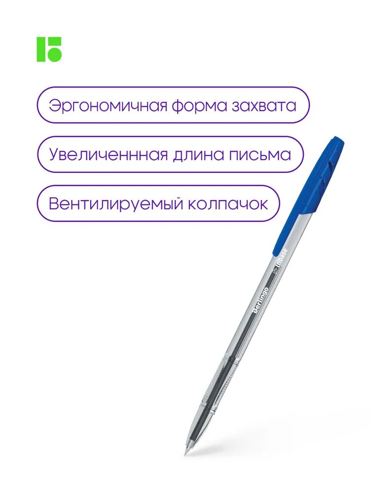 Ручки шариковые синие набор для школы 20 штук/ комплект Berlingo "Tribase" /линия письма 1 мм, smart ink (легкое, мягкое касание бумаги) информация: