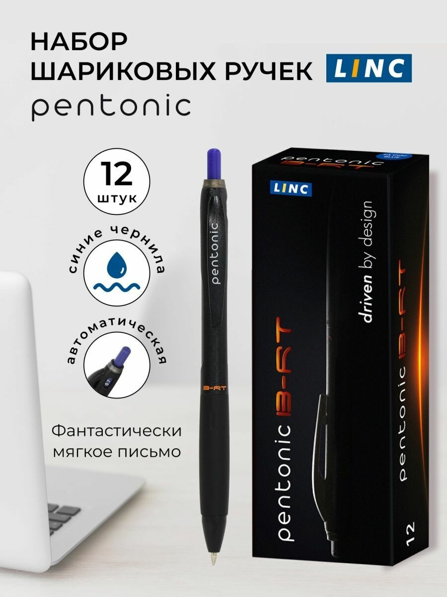 Ручки шариковые набор 12 штук LINC GLISS синие чернила, игольчатый наконечник 0,7 мм