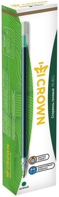 10 цен на Стержень гелевый Crown "Hi-Jell" зеленый, 138 мм, толщина пишущего узла 0,5 мм, толщина линии письма 0,35 мм, 12 шт.