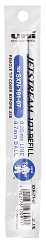 10 цен на Стержень шариковый масляный UNI "JetStream", 112 мм, синий, узел 0,7 мм, линия письма 0,35 мм, SXR-71-07 BLUE