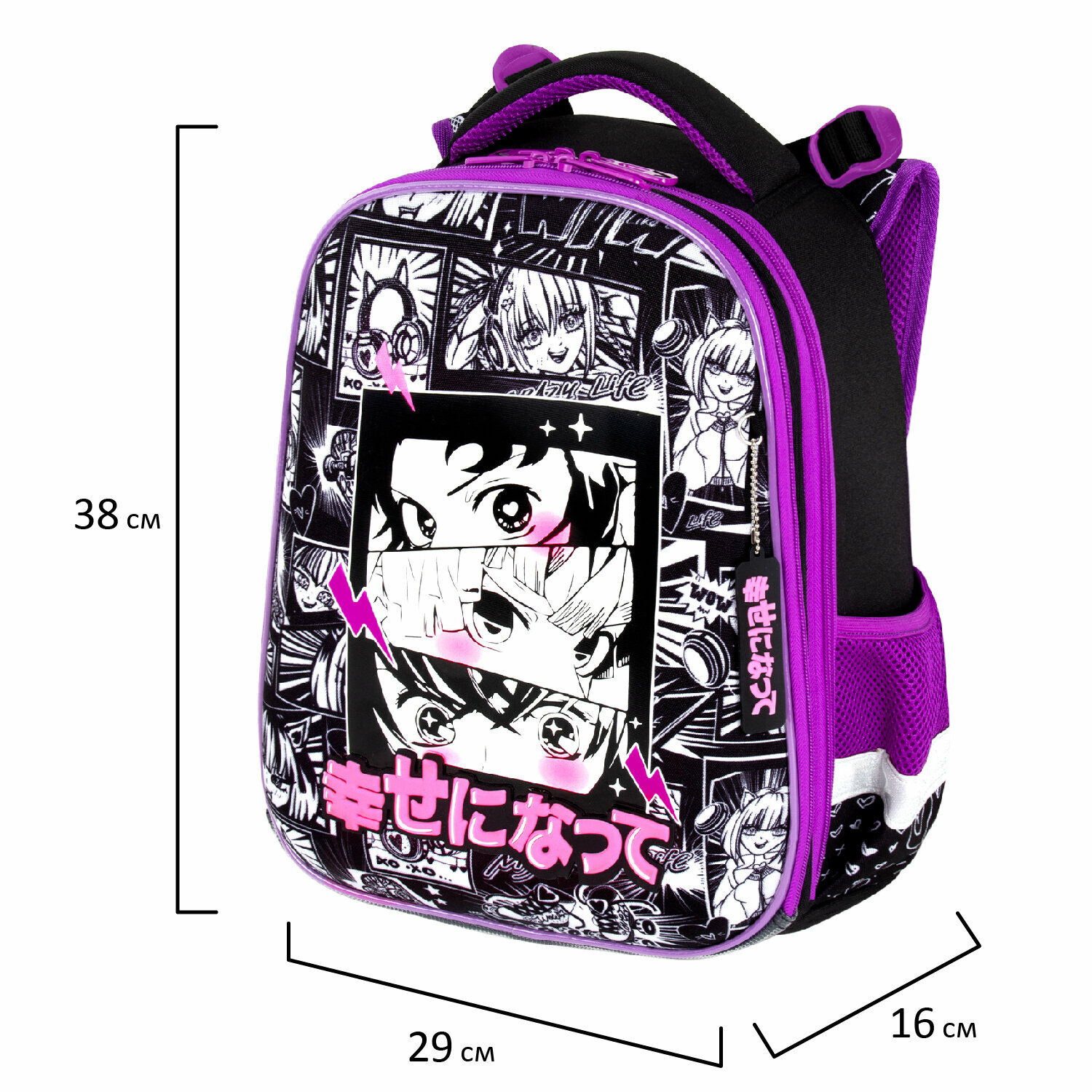 Рюкзак школьный для девочки, портфель для первоклассницы ортопедический, ранец детский в школу аниме, 2 отд, брелок, Brauberg Anime movie, информация: