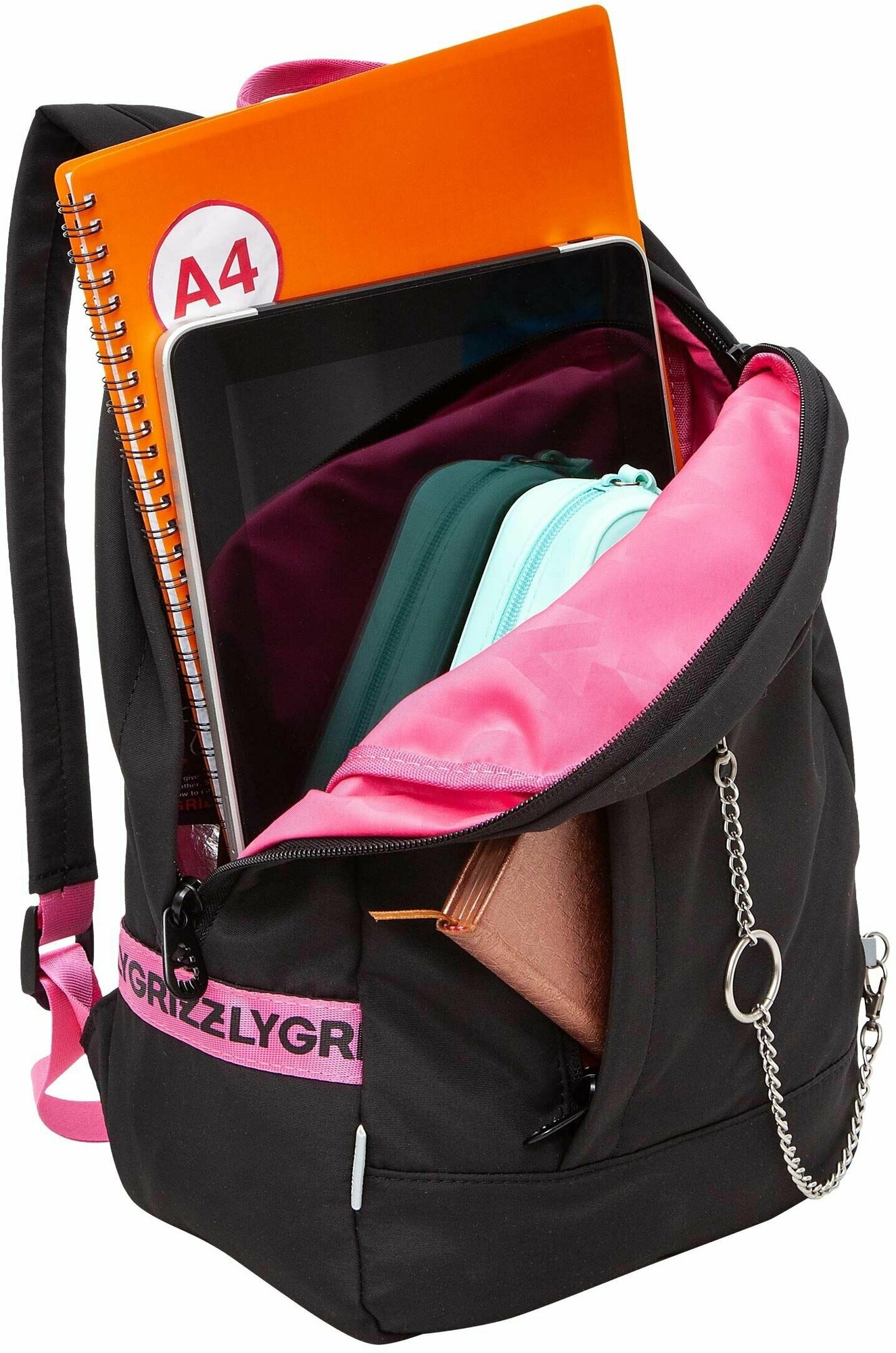 Рюкзак школьный для девочки подростка, с ортопедической спинкой, для средней школы, GRIZZLY (серый - черный)