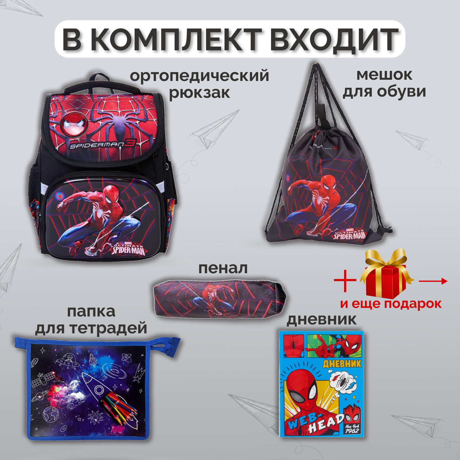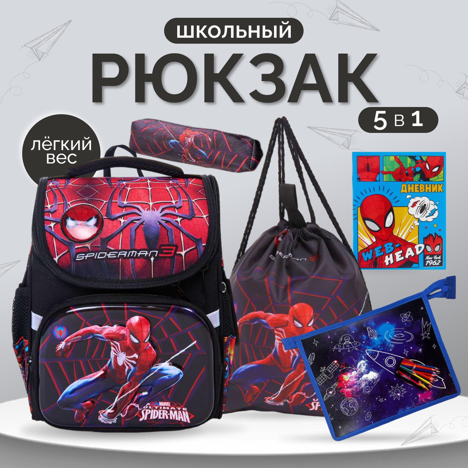 Рюкзак Человек Паук школьный , ортопедический , 5 в 1 , Spiderman информация: