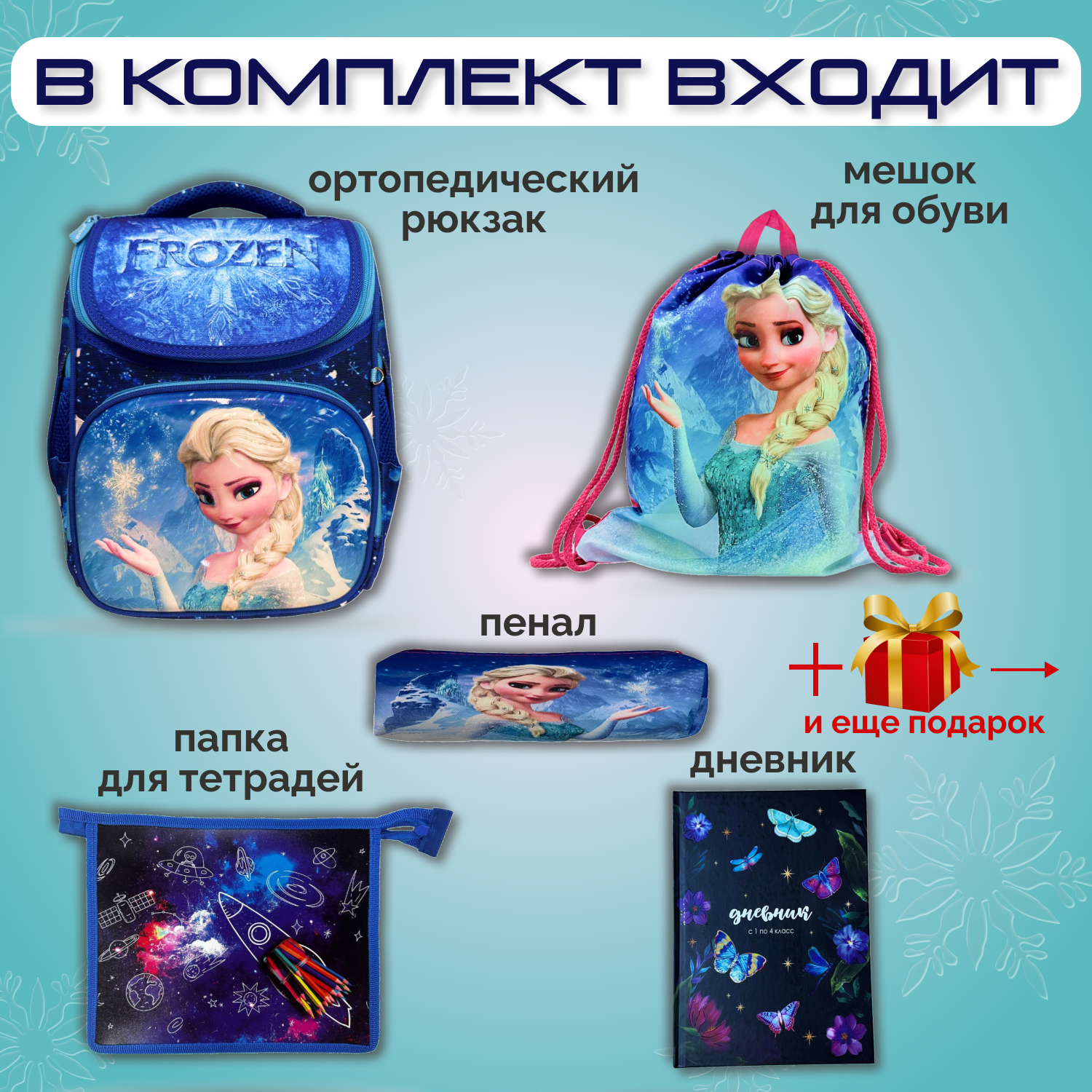 Отзывы на Рюкзак школьный для девочки Холодное сердце , ортопедический , 5 в 1 , Эльза голубой