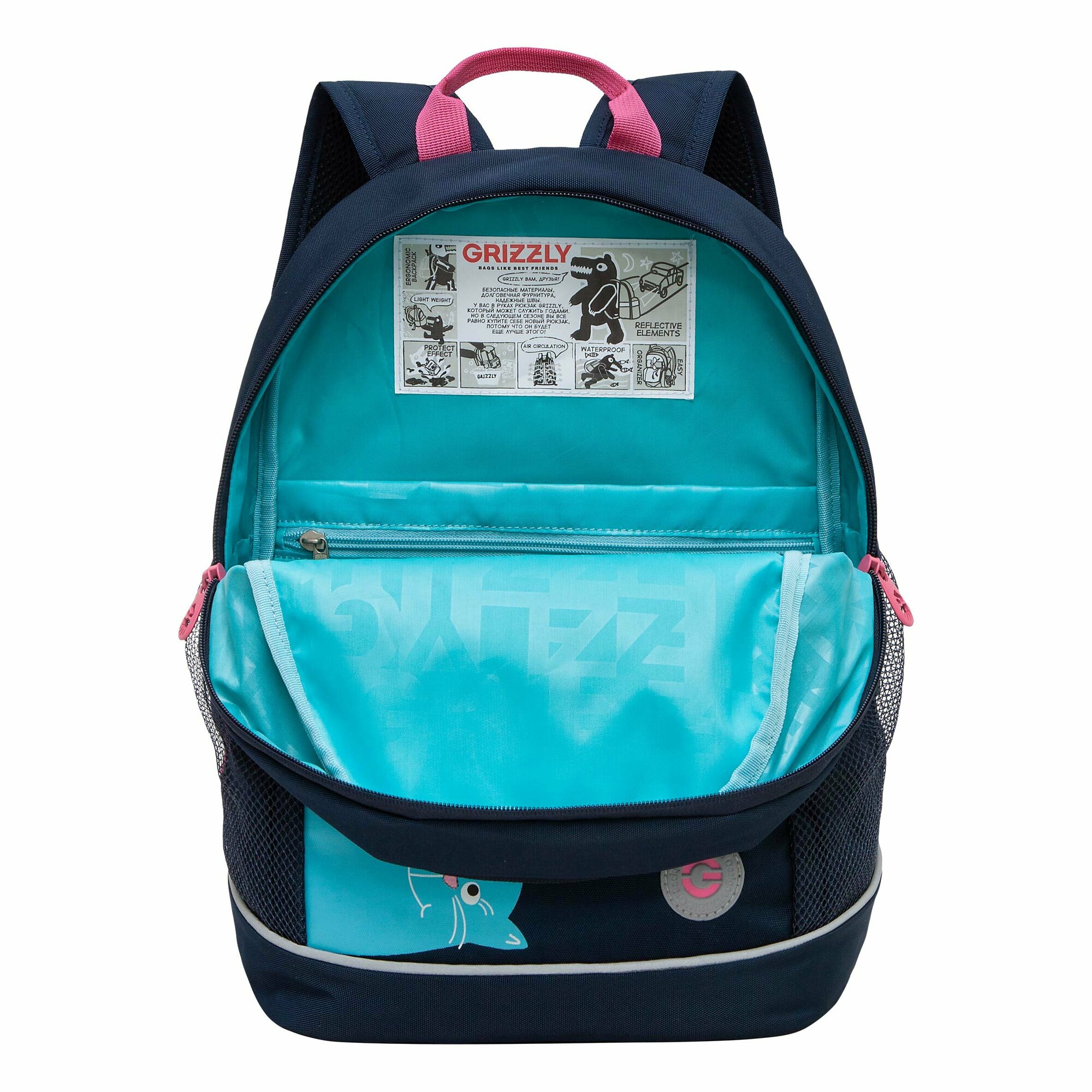 Рюкзак детский Grizzly, 22*28*10см, 1 отделение, 3 кармана, укрепленная спинка, синий (арт. 353541)