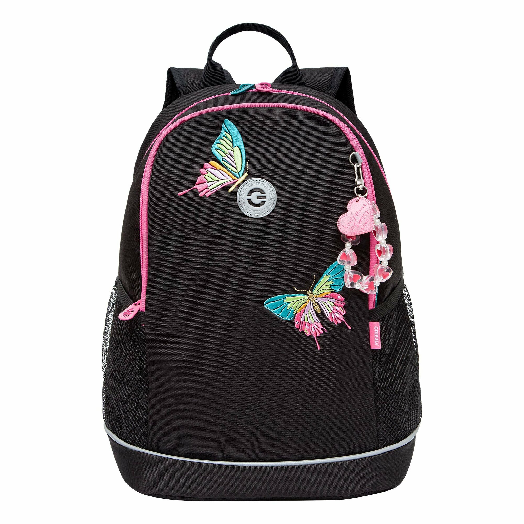 Рюкзак школьный, 38 х 28 х 18 см, Grizzly, эргономичная спинка, + брелок, чёрный информация: