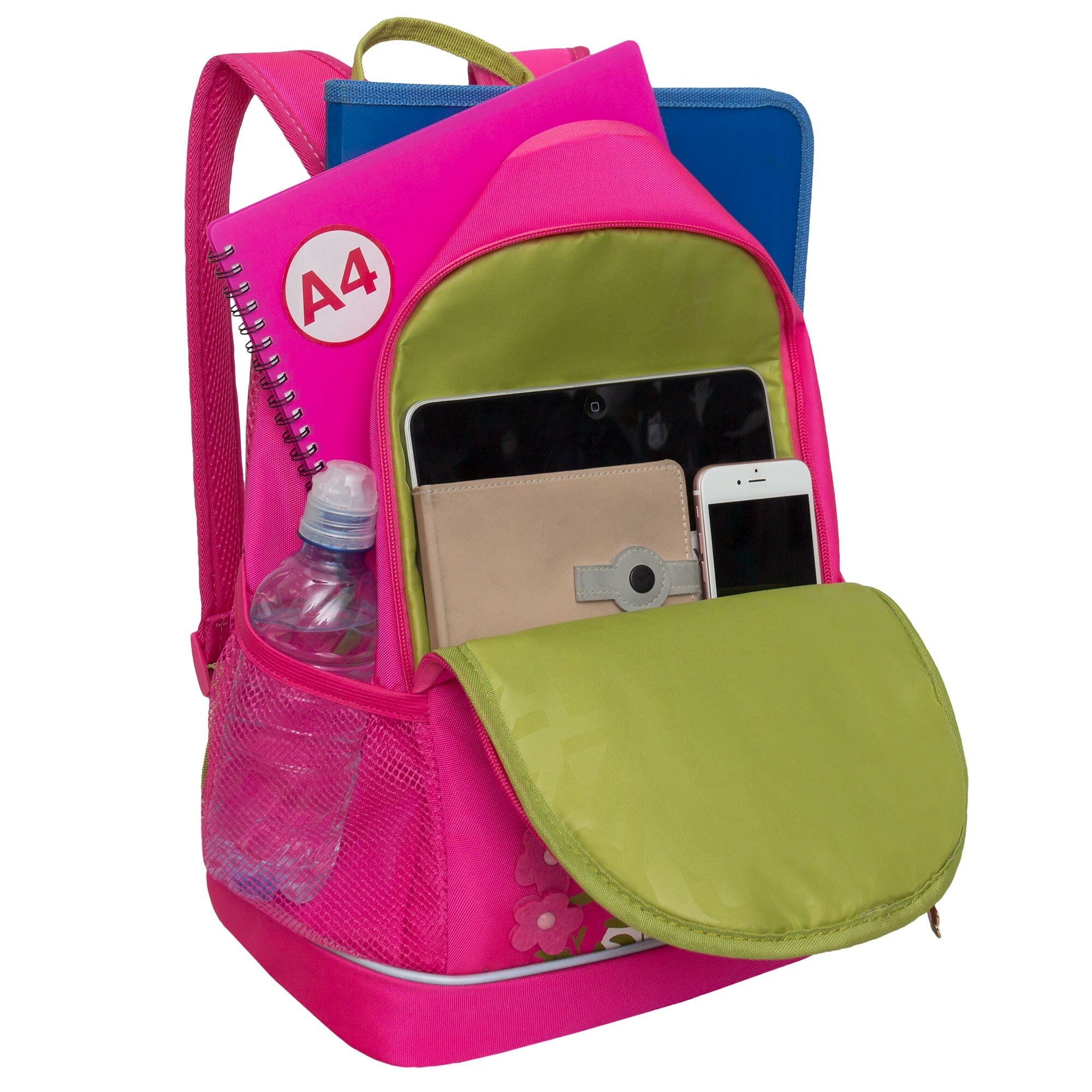 Рюкзак школьный GRIZZLY с карманом для ноутбука 13", жесткой спинкой, двумя отделениями, для девочки RG-463-7/1
