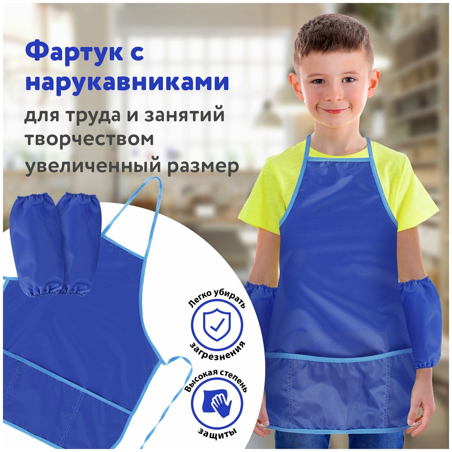 10 цен на Набор фартук с нарукавниками для уроков труда Пифагор, большой, 3 кармана, синий