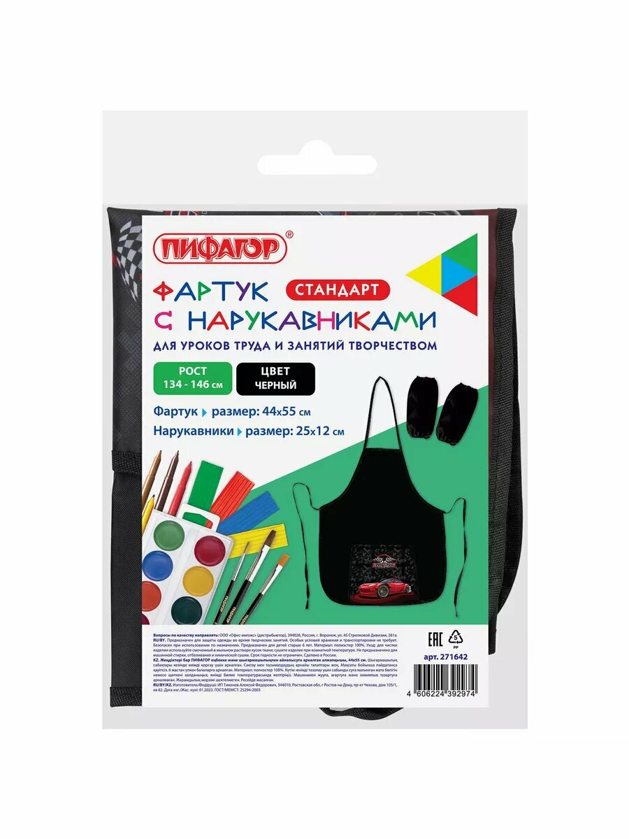 Отзывы на Накидка фартук с нарукавниками для труда пифагор, 1 карман, 46x54 см, "Rocket Car", 271642, 271642