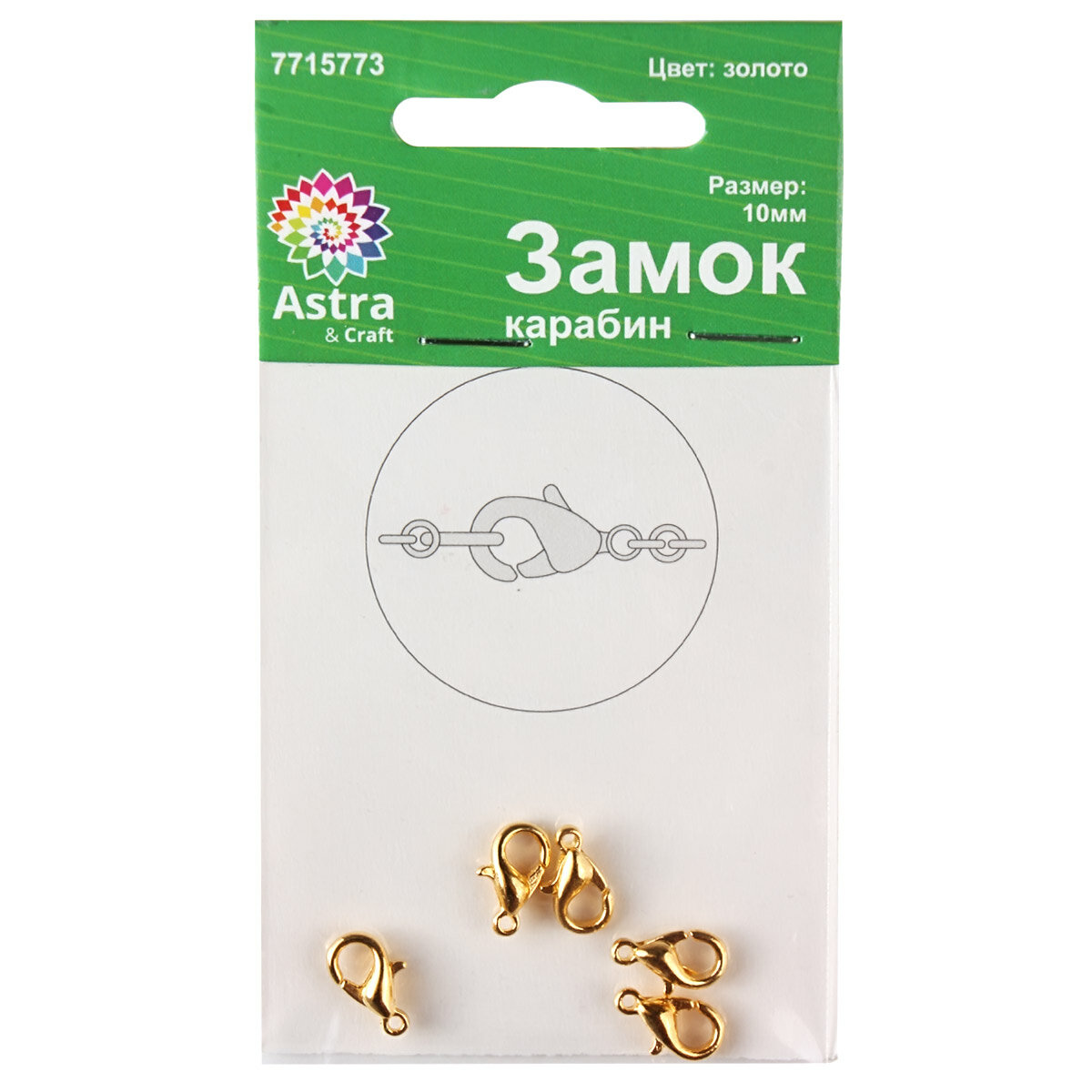 Замок для бижутерии карабин, 10 мм, 5 шт, Astra&Craft (золото) 212 ₽
