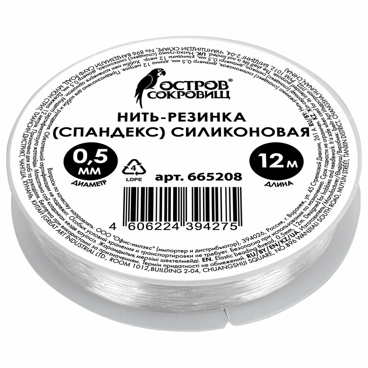 Нить-резинка (спандекс) силиконовая, диаметр 0,5 мм, длина 12 м, прозрачная, остров сокровищ, 665208 информация: