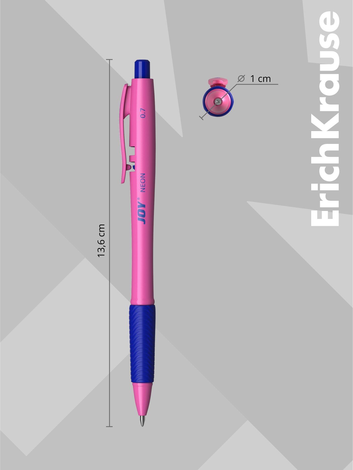 Ручка шариковая автоматическая ErichKrause® JOY® Neon, Ultra Glide Technology, цвет чернил синий (в пакете по 3 шт.) информация: