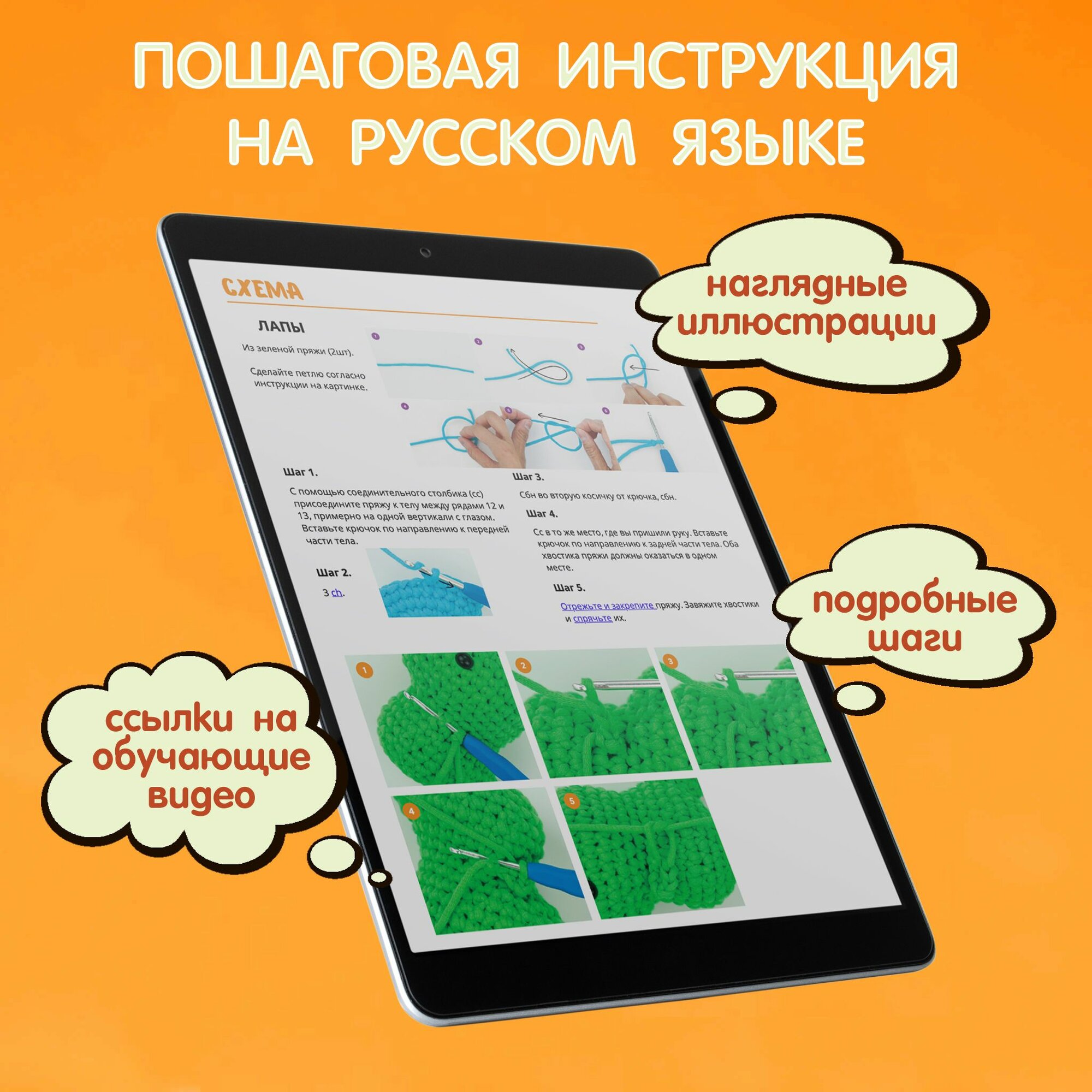 | Подробная комплектация | пряжа, наполнитель, крючок, глазки, карточка с QR- кодом на инструкцию, игла и булавки |