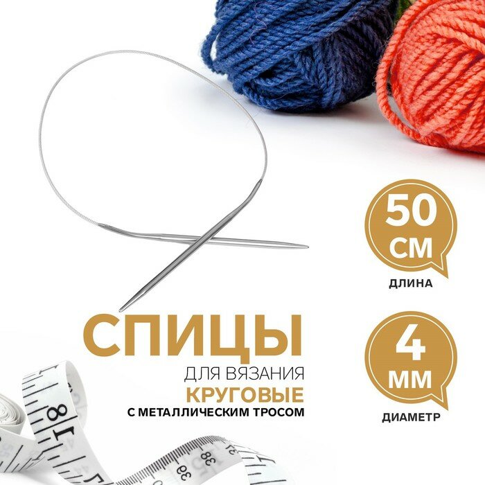 10 цен на Спицы круговые, для вязания, с металлическим тросом, d = 4 мм, 50 см