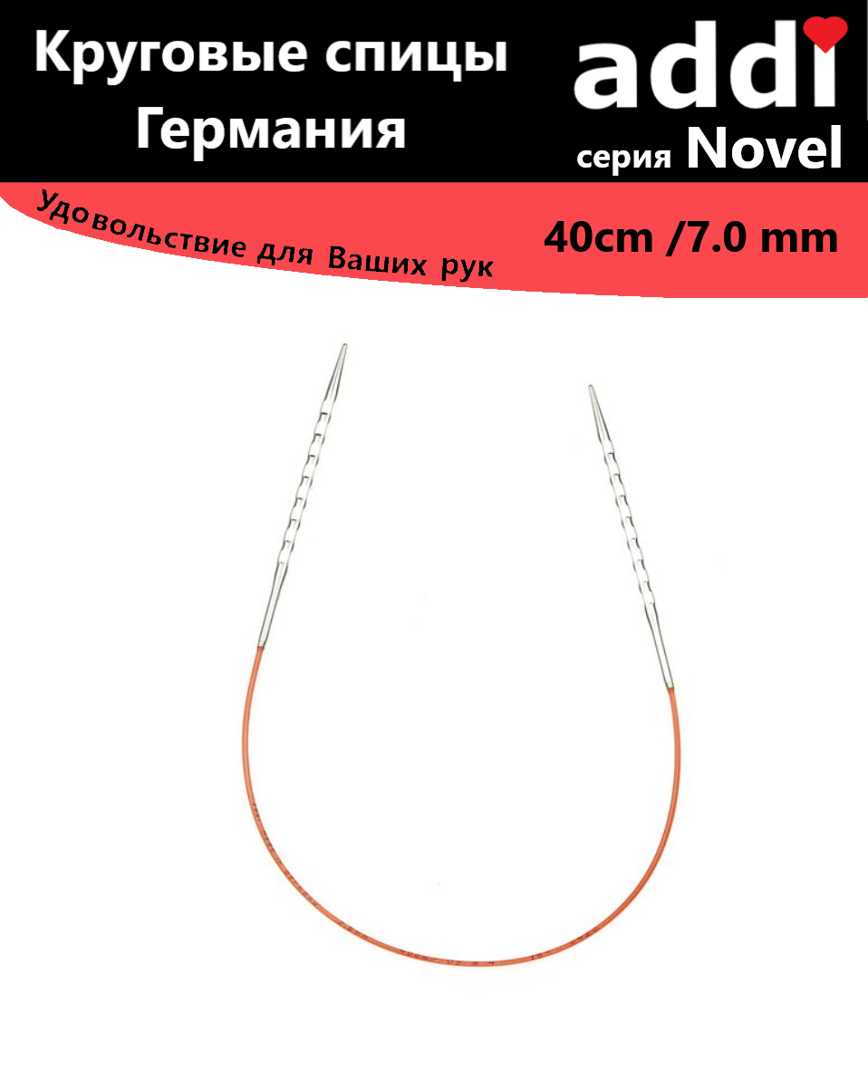 Спицы круговые Addi 7 мм, 40 см, addiNovel укороченные металлические c квадратным кончиком информация: