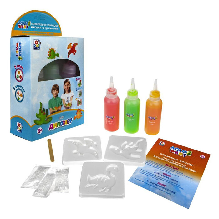 Набор «Динозавры» AQUA ART (3 формы, 3 краски по 100 мл), в коробке с окном информация: