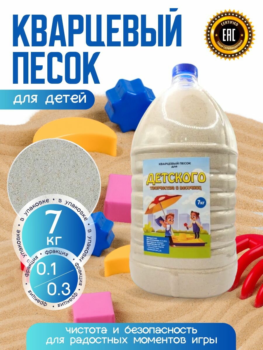 Кварцевый песок для детского творчества и песочницы 7 кг фракция 0.1-0.3 информация: