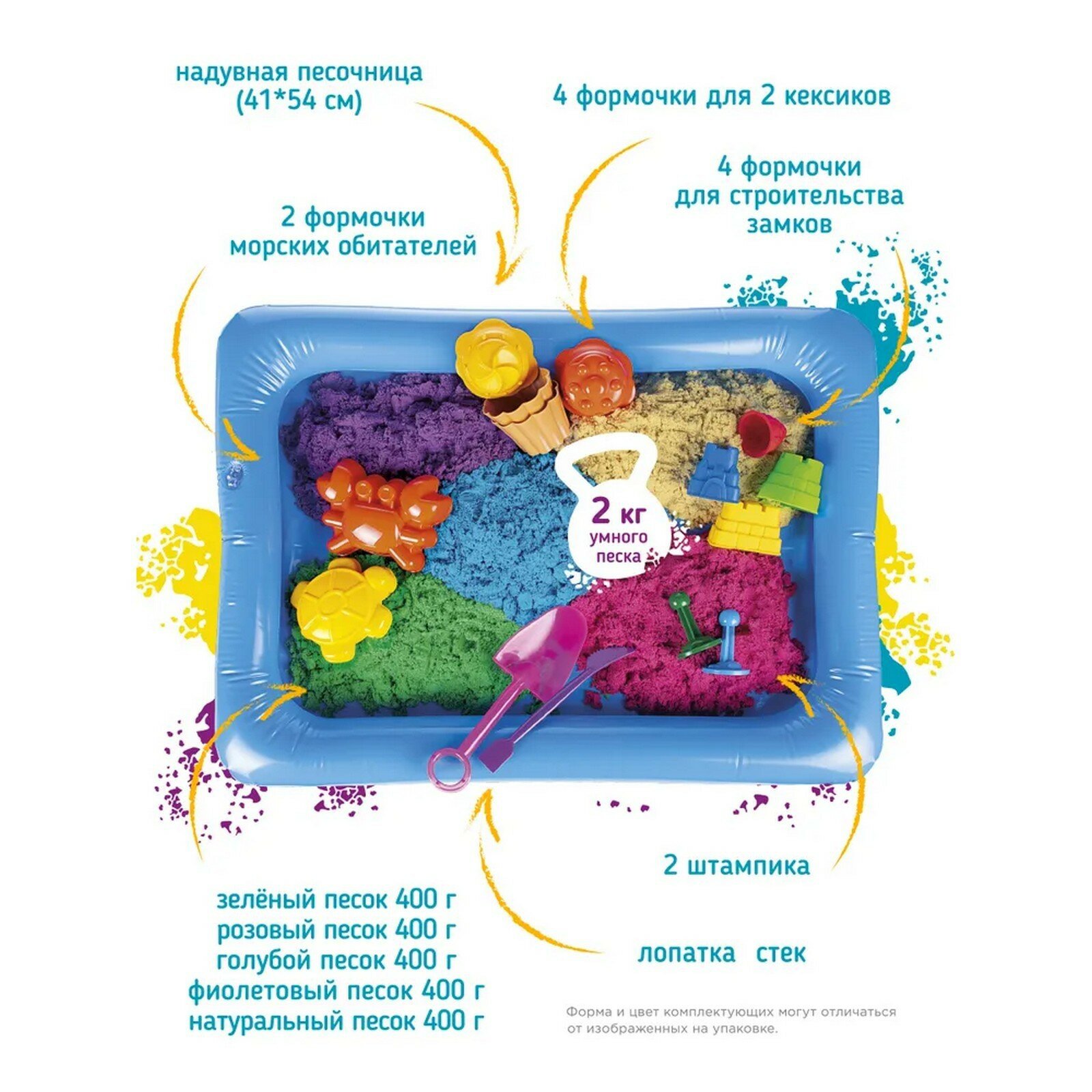 | Особенности | надувная песочница, с инструментами, с песочницей, с формочками |