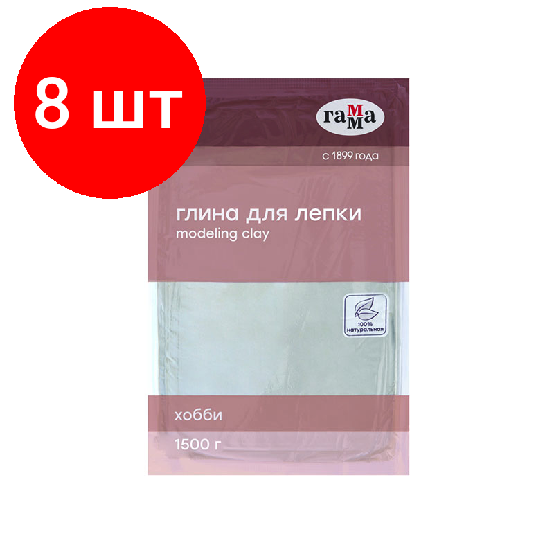 Комплект 8 шт, Глина для лепки Гамма "Хобби", натуральная, белый, 1500г, вакуумная упак. информация: