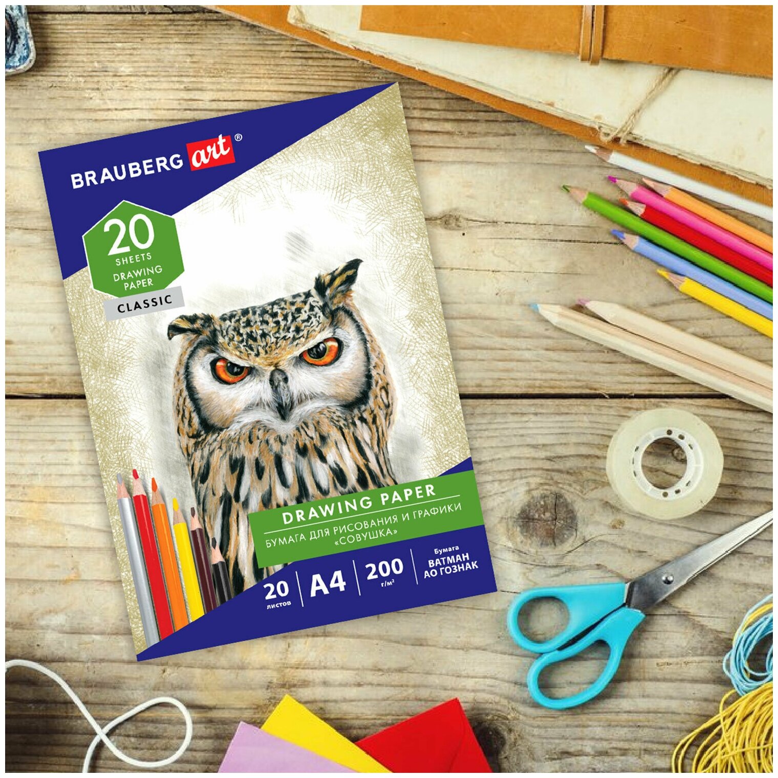 Отзывы на Бумага для рисования и графики в папке А4, 20 л., 200 г/м2, Ватман Гознак, Brauberg Art Classic, 114492